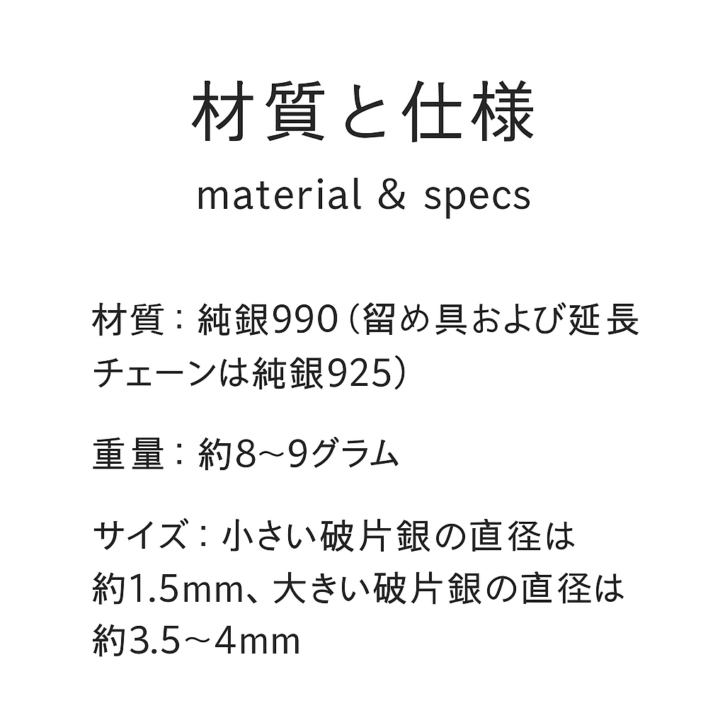 高純度シルバーならではの柔らかな輝きが特徴で、シンプルながら高級感のある仕上がり。