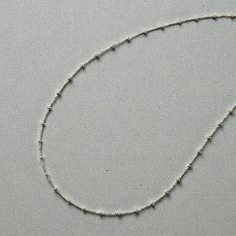 デザイン:細いチェーンに小さなボールを連ねたステーションチェーンタイプです。